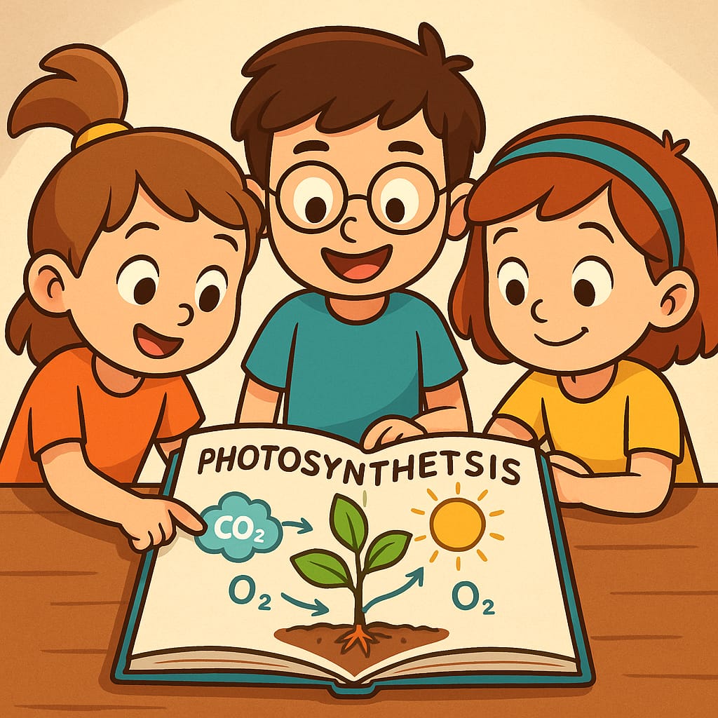 Fotosentez Kavramını İnceleyen Çocuklar. (Yapay Zeka ile Oluşturulmuştur.)