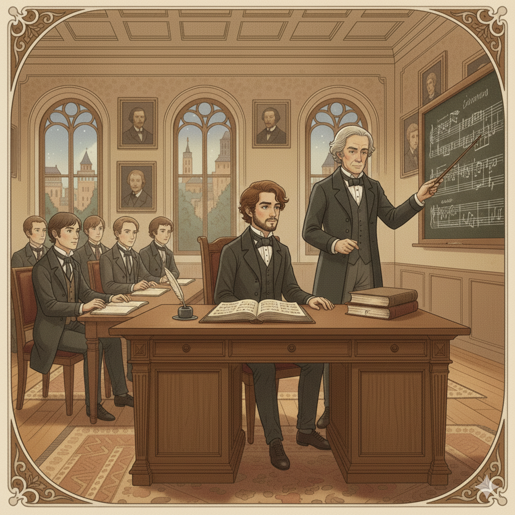 Konservatuvarda ders alırken Chopin (Görsel yapay zekâ ile oluşturulmuştur).