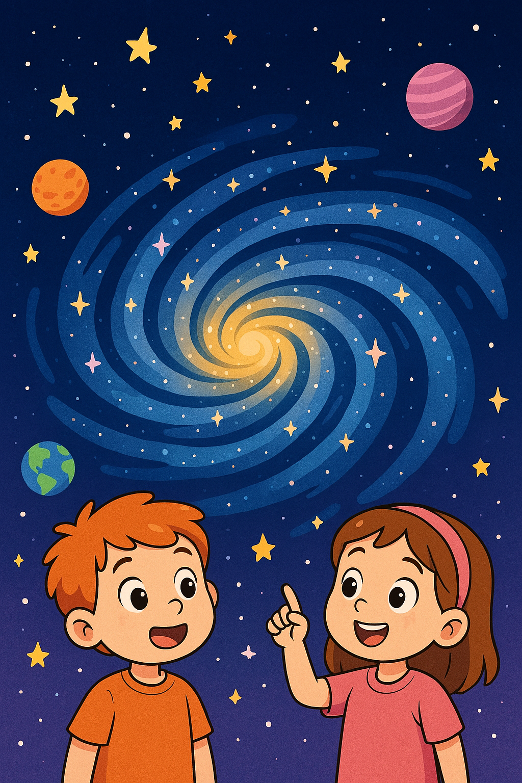 Bizim evimiz olan Dünya, Güneş Sistemi’nin bir parçası. Peki, Güneş Sistemi nerede? O, Samanyolu Gökadası denen çok büyük bir gökadanın içinde yer alıyor. Samanyolu’nun içinde milyonlarca, hatta milyarlarca yıldız var! Gece gökyüzüne baktığında gördüğün yıldızların çoğu, Samanyolu’ndaki komşularımız.