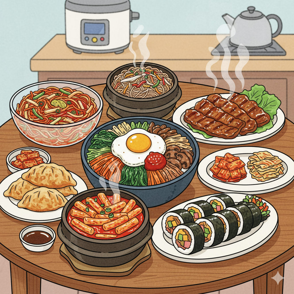 Kore mutfağında çok farklı yemekler vardır. "Kimchi" en bilinen ve vazgeçilmez yemeklerden biridir. Kimchi, fermente edilmiş sebzelerden (genellikle acılı lahana) yapılır ve neredeyse her yemeğin yanında servis edilir. Ayrıca "Bibimbap" (karıştırılmış pirinç) ve "Bulgogi" (soslu ızgara et) gibi besleyici ana yemekler de çok sevilir.