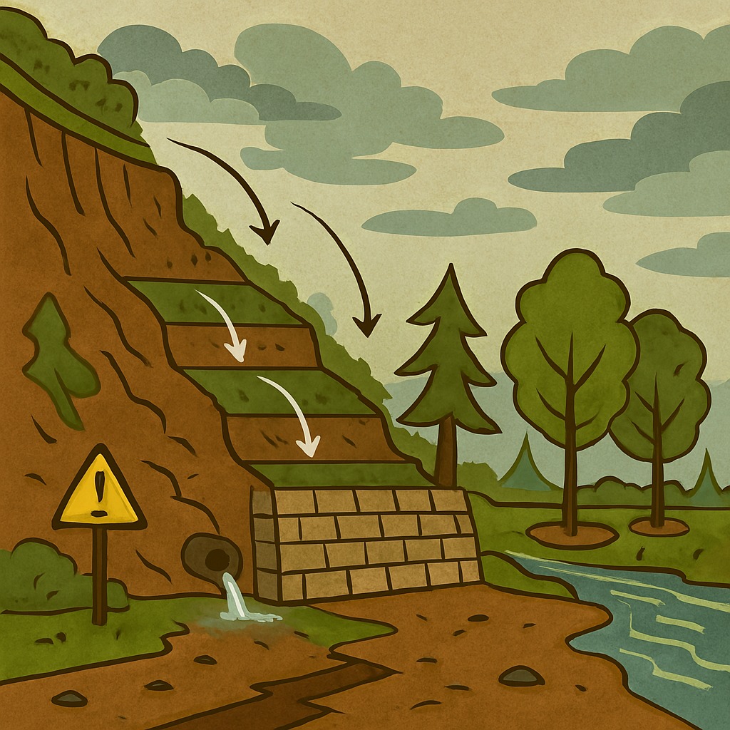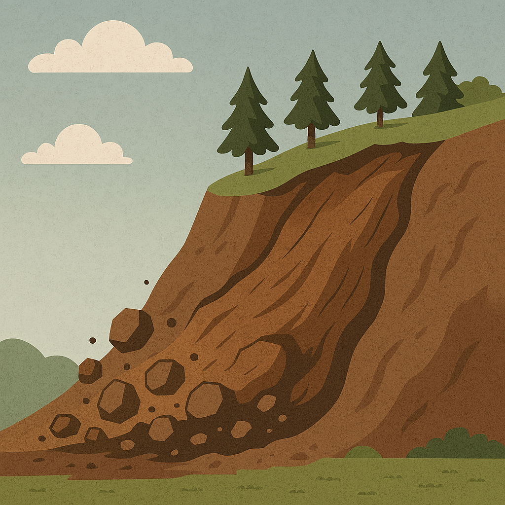 Küçük taşlar veya kaya parçaları dik yamaçlardan kopar. Yollar ve evler için risk oluşturur.