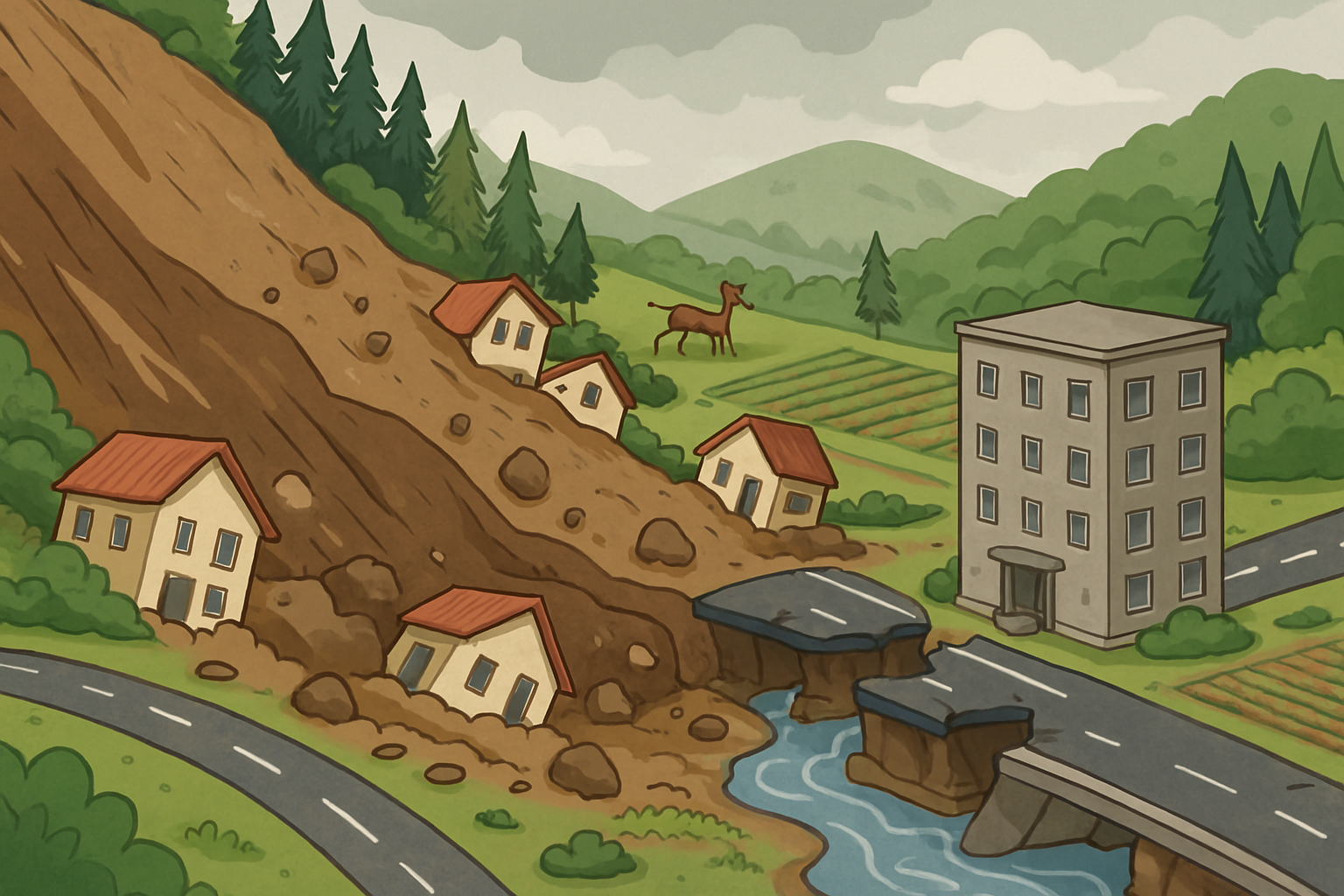Heyelanlar evler, binalar, yollar, tarım alanları ve altyapı için ciddi tehdit oluşturur. Ormanlar, hayvan yaşamı ve nehirlerin akışı da etkilenebilir. Büyük heyelanlar can ve mal kaybına yol açabilir ve bölgede yaşamı zorlaştırır.