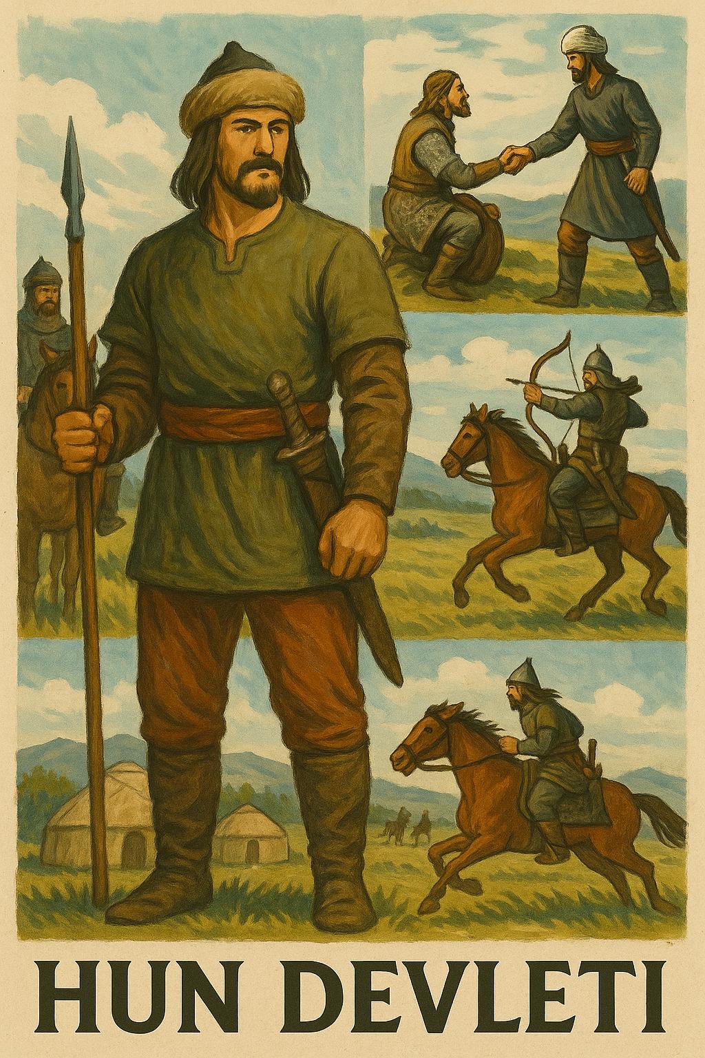 Hunlar, tarihte bilinen ilk büyük Türk devletidir. Çok güçlü savaşçılardan oluşan bu toplum, at üzerinde ok atma konusunda çok başarılıydı. Hayatları göçebe bir yaşam tarzıyla geçtiği için çadırlarda yaşar, hayvanlarla uğraşır ve sürekli hareket hâlinde olurlardı. Hunlar, sadece savaşan bir topluluk değildi; aynı zamanda büyük bir devlet kurmuşlardı.
