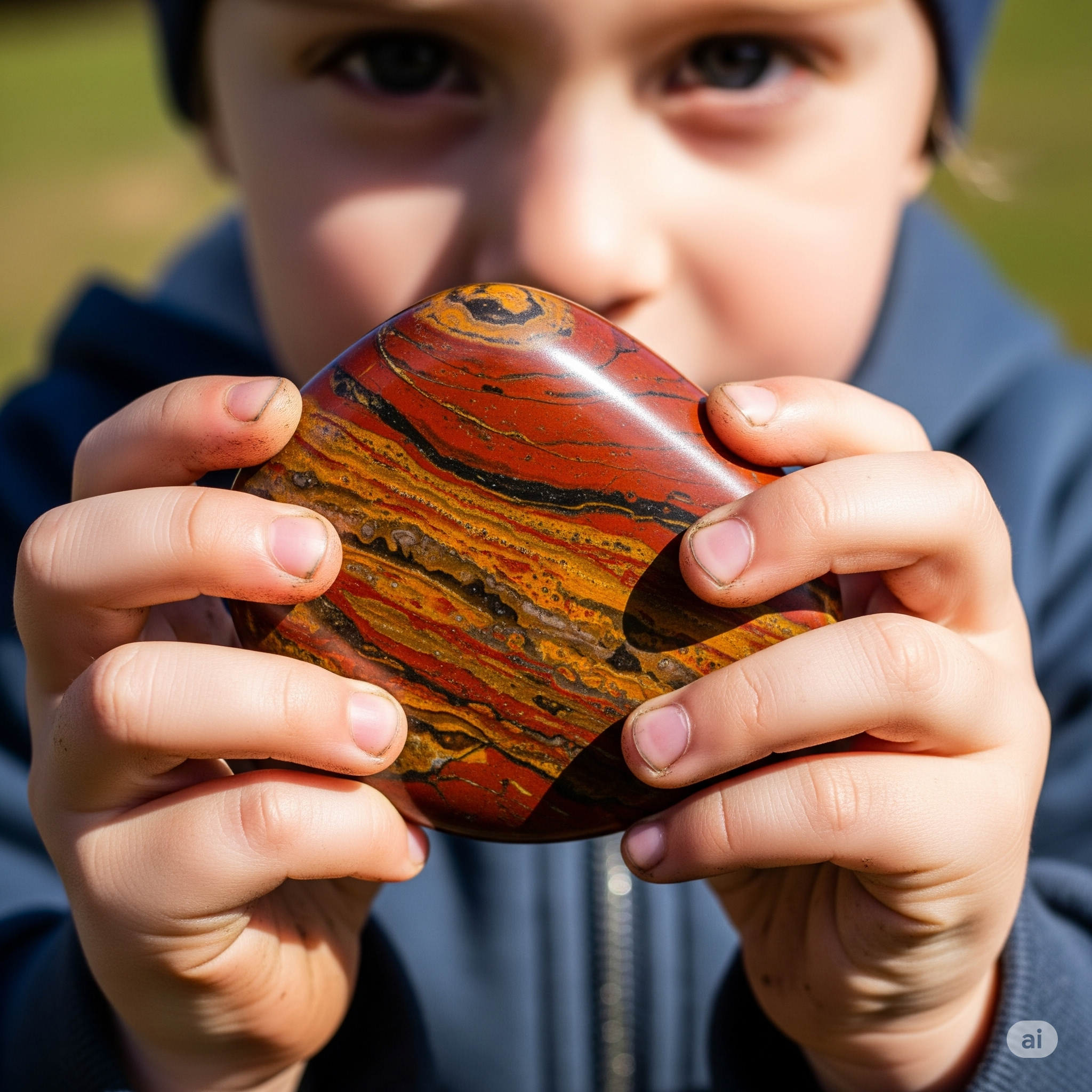 Jasper, doğada bulunan renkli ve sert bir taştır. İçinde farklı mineraller olduğu için kırmızı, yeşil, kahverengi gibi birçok renkte ve çeşitli desenlerde olabilir. Bu taş, hem güzel görünür hem de kolayca şekillendirilebilir. Bu yüzden eski zamanlardan beri insanlar jasperi takı ve süs eşyası yapmak için kullanmıştır.