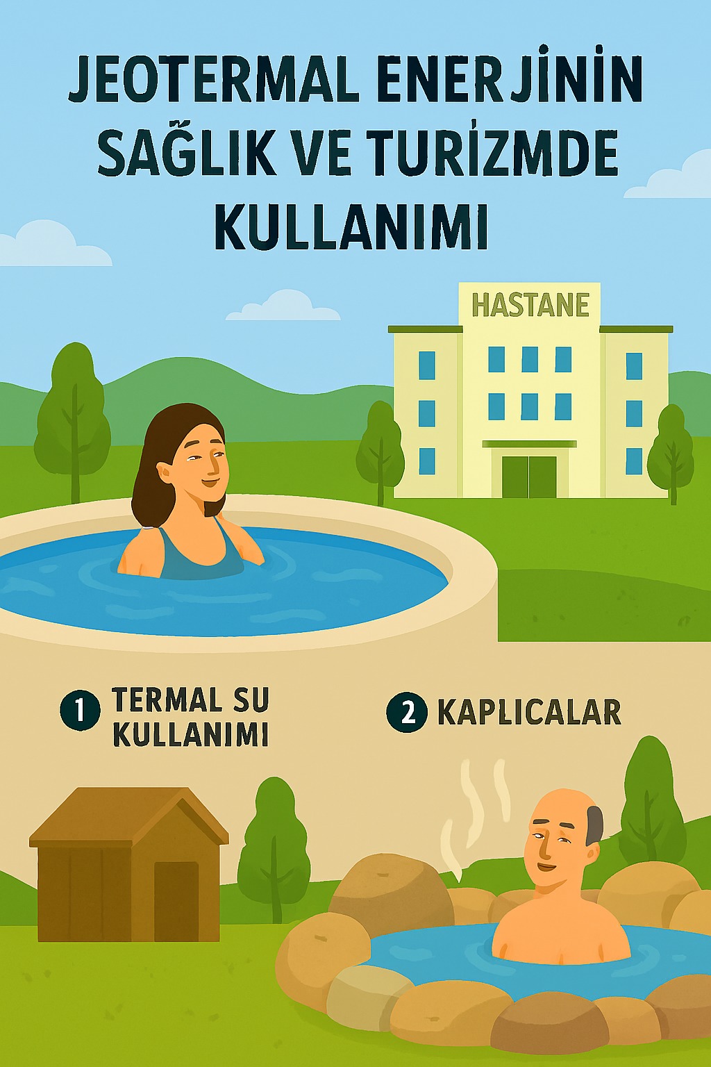 Kaplıcalar ve termal merkezler, jeotermal enerjiyi sağlık ve turizm amaçlı kullanır. Sıcak su, rahatlama ve tedavi için idealdir. İnsanlar bu kaynaklardan faydalanarak çeşitli cilt ve eklem rahatsızlıklarını giderebilir ve aynı zamanda dinlenme imkânı bulurlar.