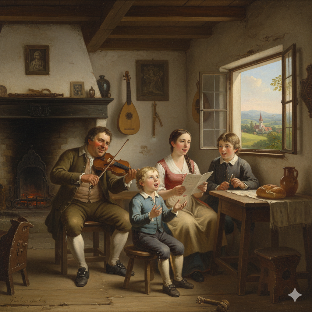 Küçük Haydn, ailesiyle beraber, temsili (Görsel yapay zekâ ile oluşturulmuştur).