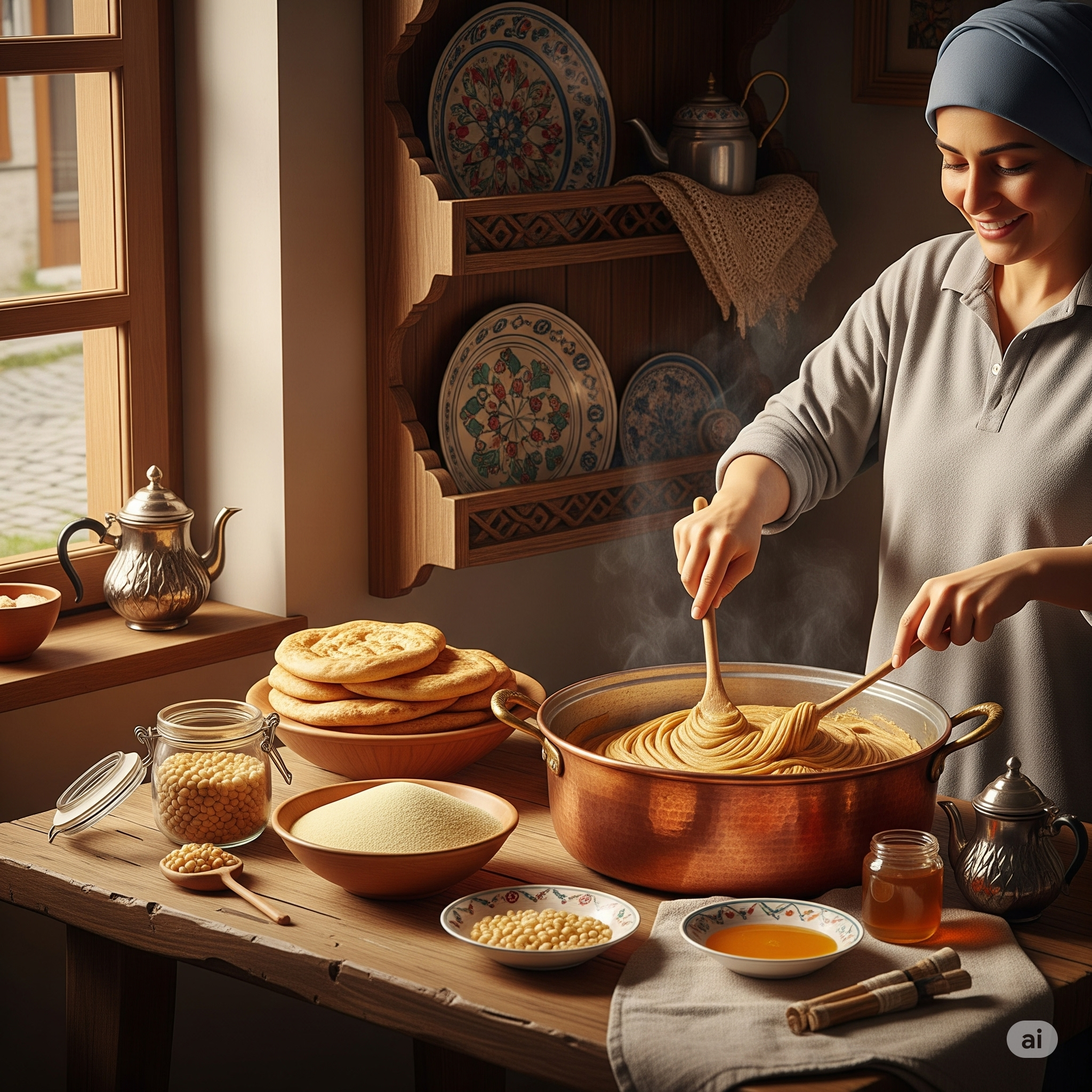Bu helvayı yapmak biraz sabır ister ama sonucunda çok güzel bir tat ortaya çıkar. Tamamen doğal malzemelerle hazırlanır.