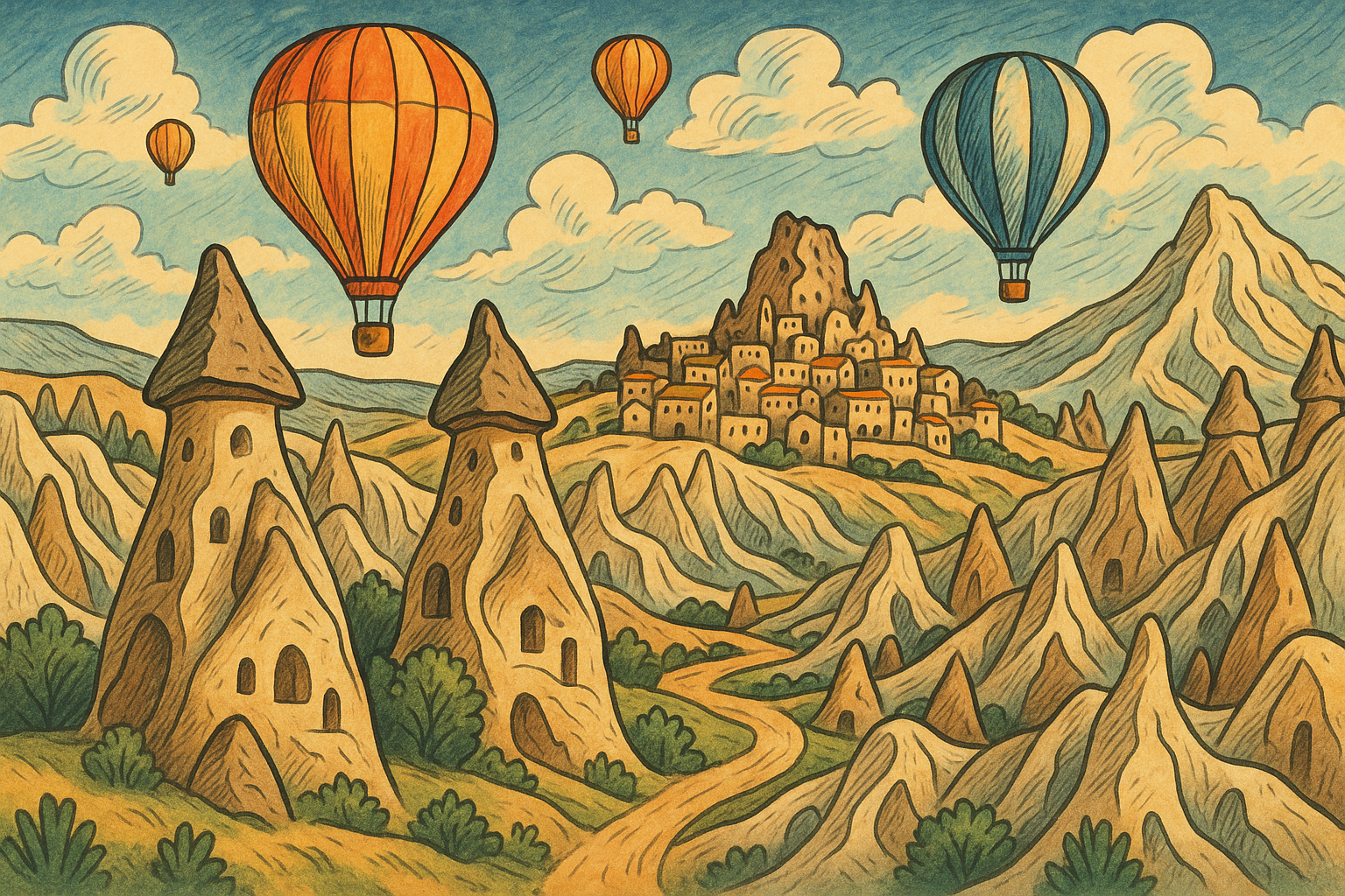 Sen hiç kocaman, şapkalı mantarlara benzeyen dağlar gördün mü? Ya da yerin altına saklanmış koca bir şehirde gezmek ister miydin? İşte, Türkiye'nin tam ortasında, Nevşehir'de bulunan Kapadokya, seni böyle masalsı bir dünyaya davet ediyor!