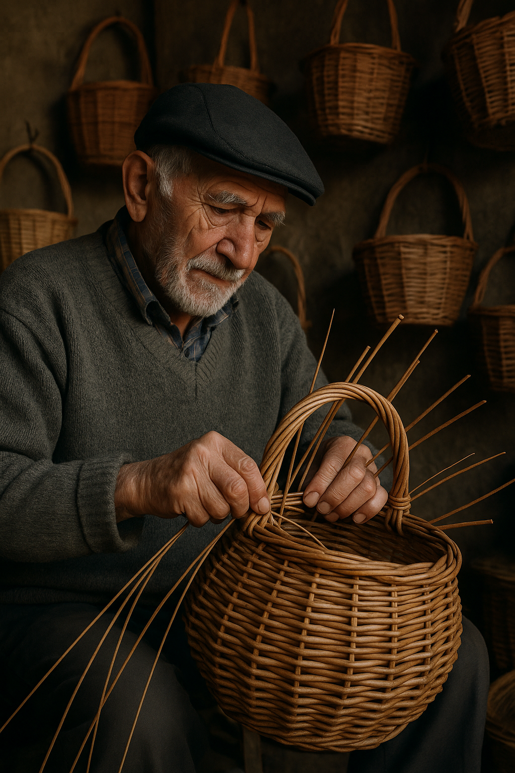 Ustalar, örgü sırasında hiçbir çivi, tutkal veya makine kullanmaz. Tüm işlem el emeğiyle yapılır. Sepetin kulpu da aynı dallardan örülerek tamamlanır.