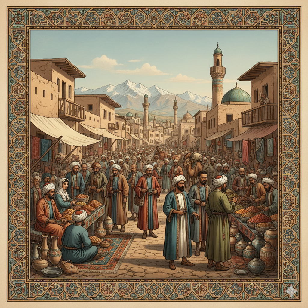 11.yüzyılda Kâşgar, Doğu Türkistan coğrafyası (Görsel yapay zekâ ile oluşturulmuştur).