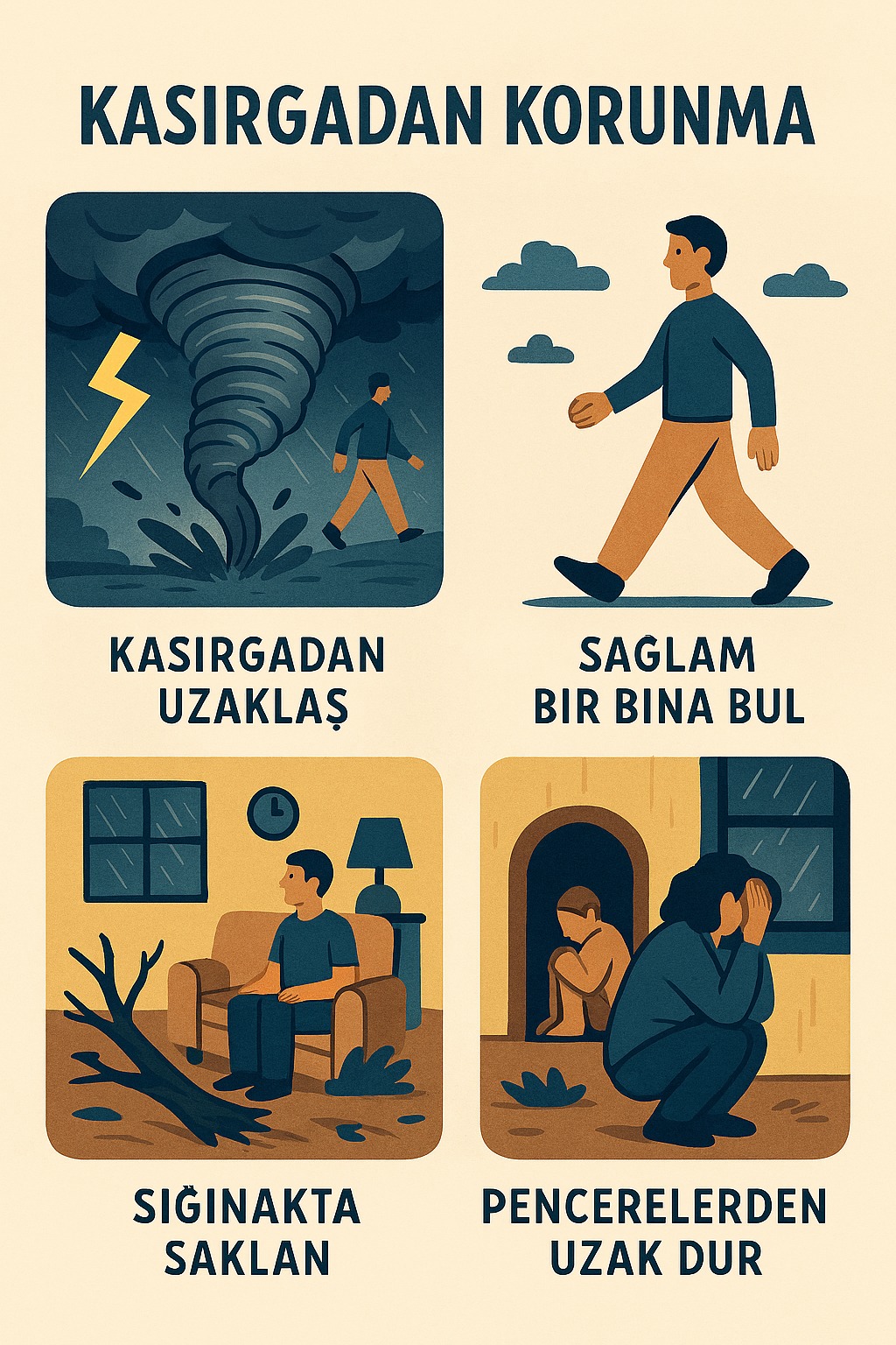 Kasırga mevsiminde dikkatli olmak çok önemlidir. İnsanlar güvenli yerlerde saklanmalı, evlerini ve eşyalarını korumalıdır. Önceden hazırlık yapmak, kasırganın etkilerini azaltabilir.