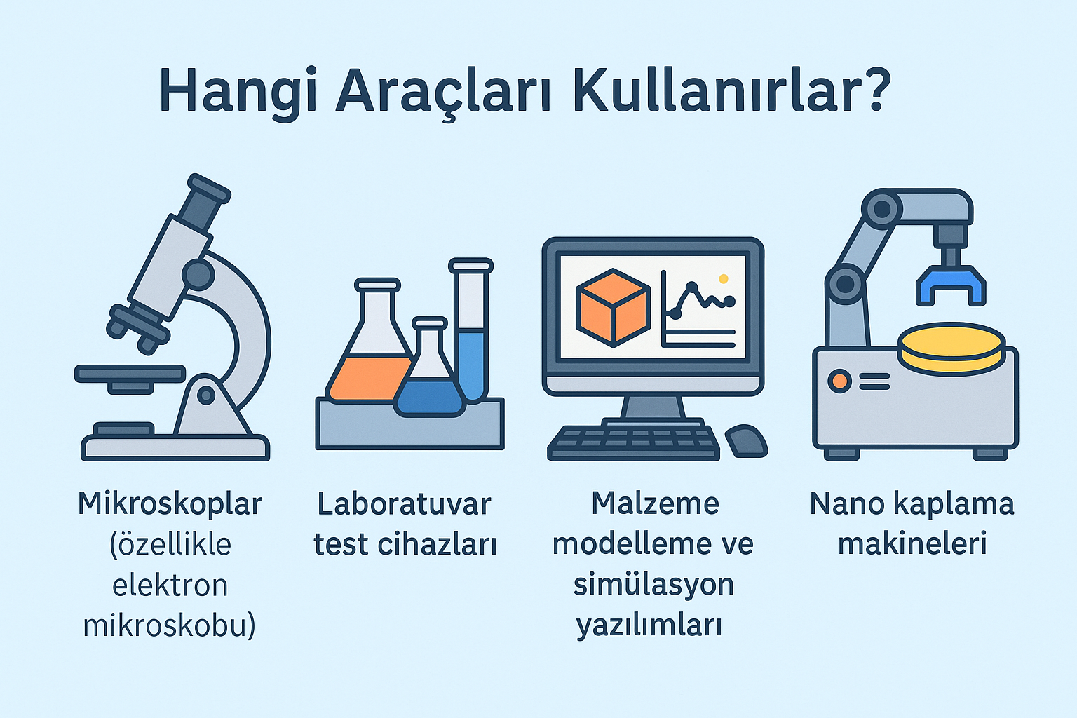 Malzeme ve Nanoteknoloji Mühendisi Hangi Araçları Kullanılırlar? (Yapay zekâ ile oluşturulmuştur.)