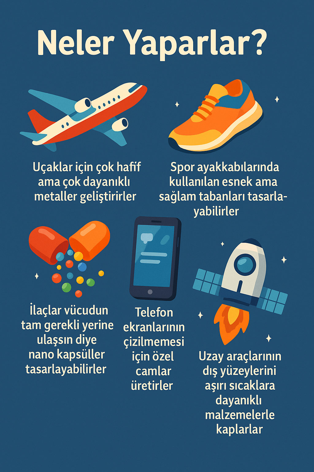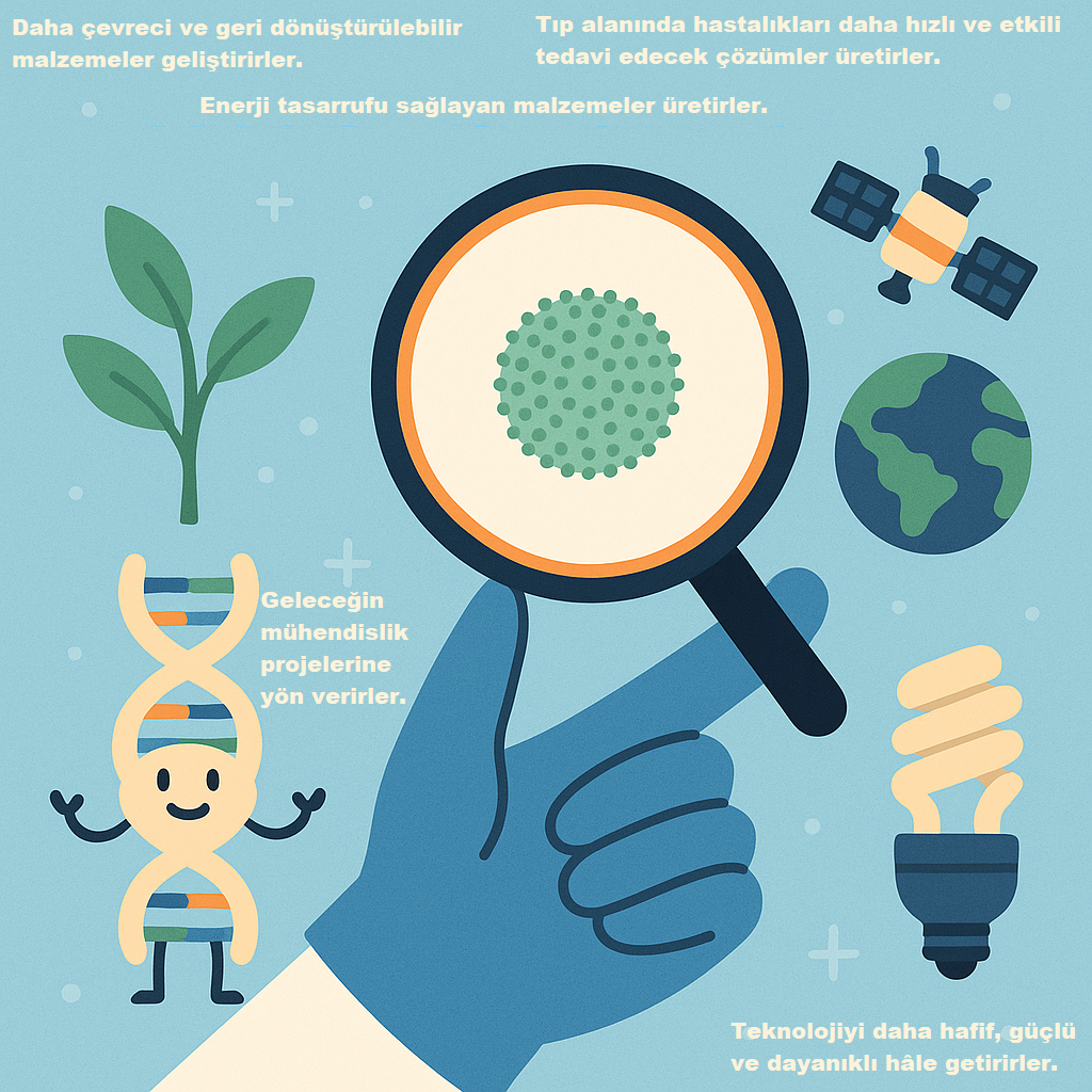 🧠 Malzeme bilimciler, daha hafif, daha sağlam ve çevre dostu malzemeler tasarlar.