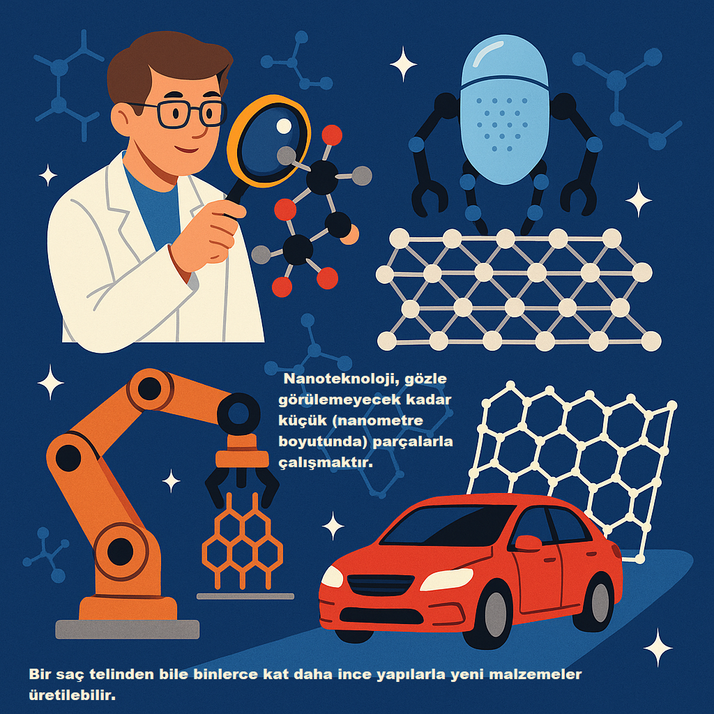 🧫 Nanoteknoloji, gözle görülemeyecek kadar küçük (nanometre boyutunda) parçalarla çalışmaktır.