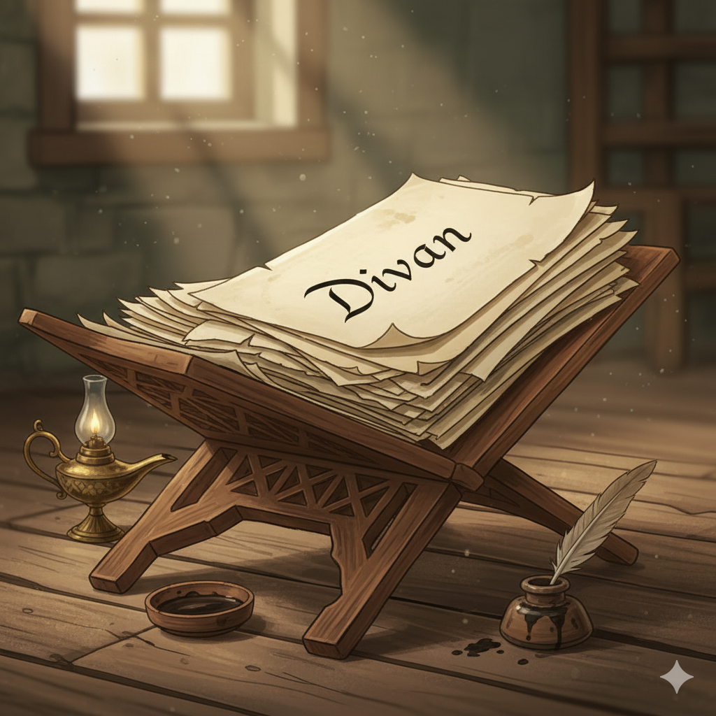Divan adlı eserin yazım süreci (Görsel yapay zekâ ile oluşturulmuştur).