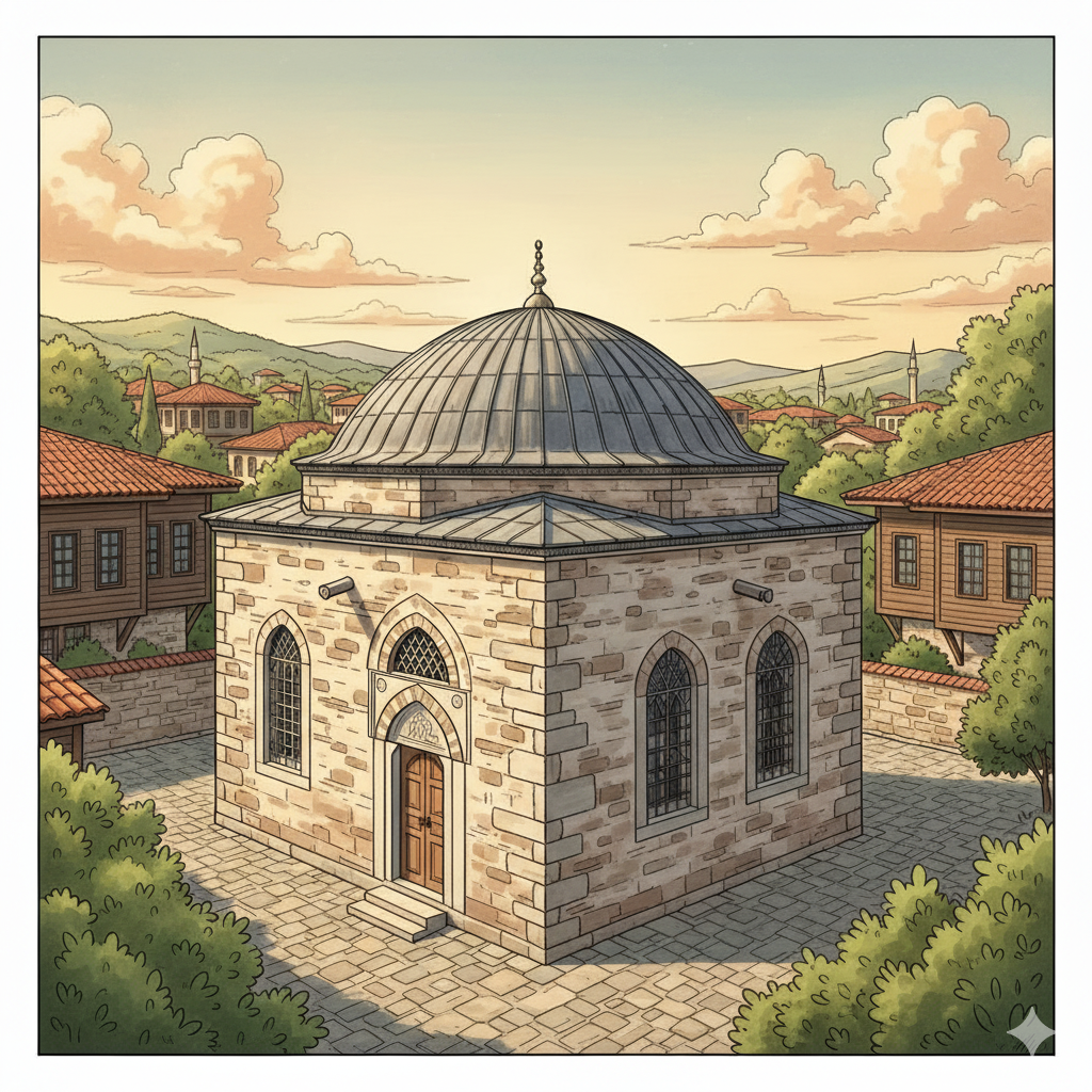 Üftâde Hazretleri'nin Bursa'daki türbesi temsili (Görsel yapay zekâ ile oluşturulmuştur).