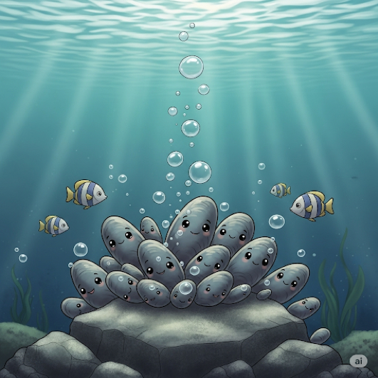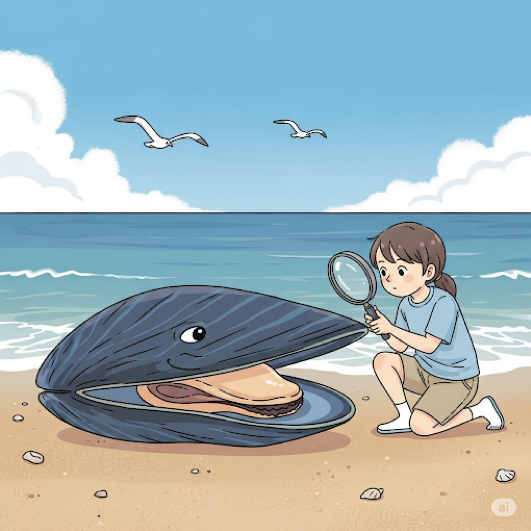 Midyeler, sert ve siyah kabuklarının içinde yaşayan, yumuşak bir vücudu olan deniz canlılarıdır. Sen de sahilde yürürken kayalıklara yapışmış veya kumun içine gömülmüş midyelere rastlayabilirsin. Midyeler, doğanın küçük filtreleri gibidir ve deniz suyunu temiz tutmaya yardımcı olurlar.