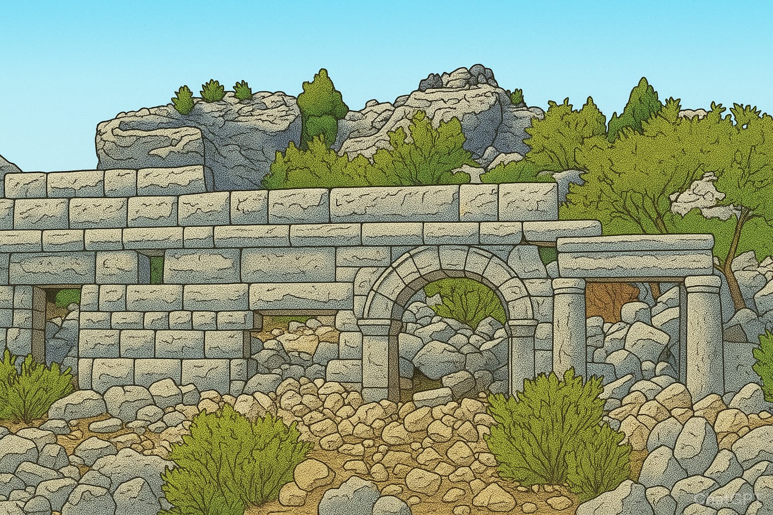 - 🧱 Taş duvarlar: Evlerin ve yapıların kalıntıları.