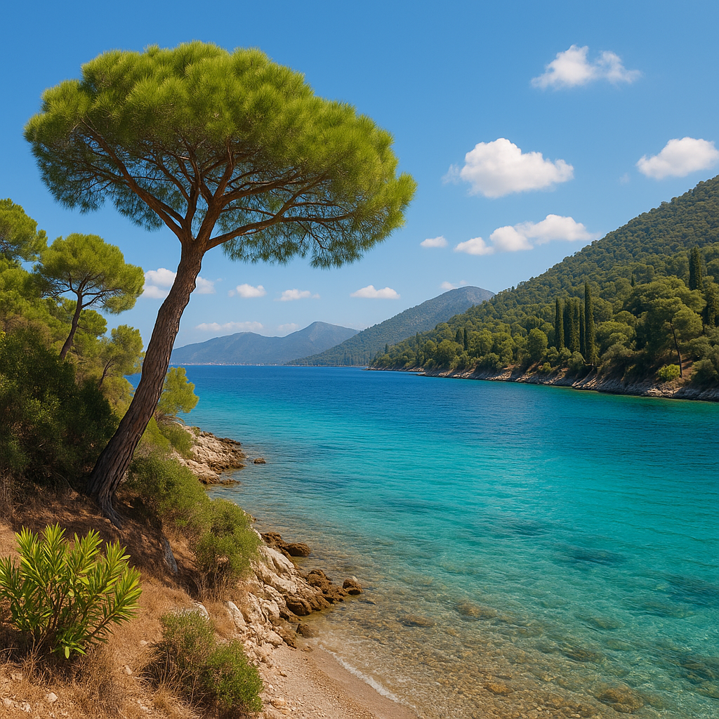 Muğla'da görülen Akdeniz iklimi. (Yapay zeka ile oluşturulmuştur.)