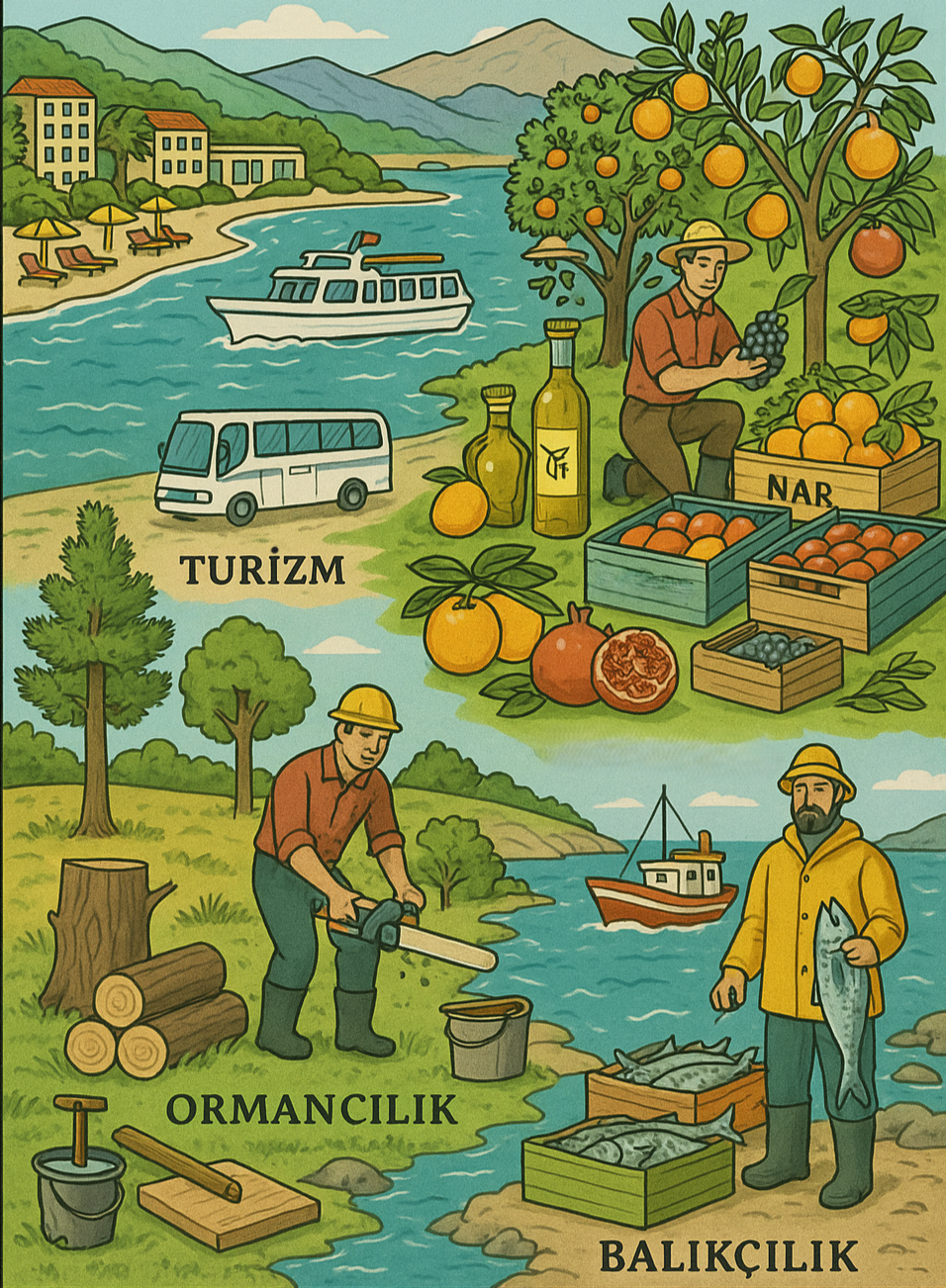 Muğla’nın ekonomisi büyük ölçüde tarım, turizm ve ormancılığa dayanır. Özellikle yaz aylarında turizm en önemli gelir kaynaklarından biridir. Bodrum, Marmaris, Fethiye gibi ilçelere hem yurt içinden hem de yurt dışından çok sayıda turist gelir. Bu durum otelcilik, yeme içme, ulaşım ve hediyelik eşya gibi birçok sektörü canlandırır.
