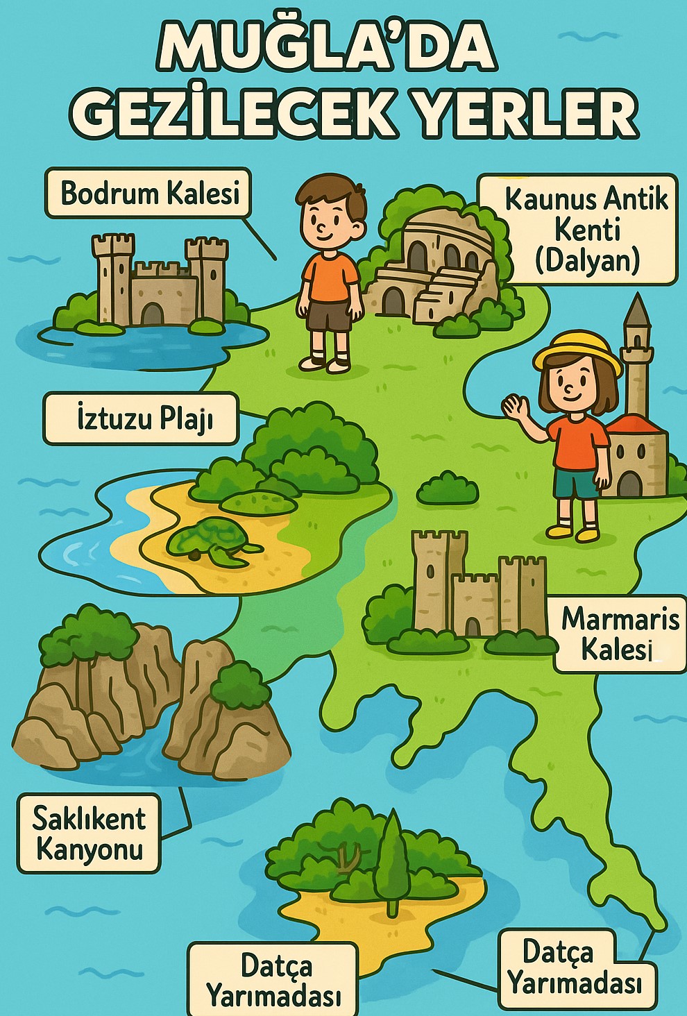 Muğla, tarihî ve doğal güzellikleriyle ziyaretçilerine pek çok farklı yer sunar. İşte çocukların da ilgisini çekebilecek bazı önemli yerler: