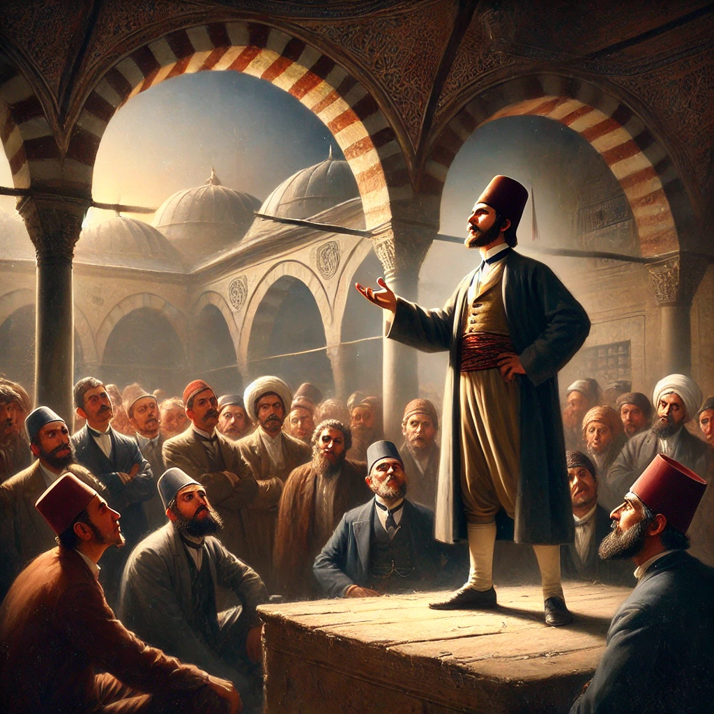 Namık Kemal halka seslenirken (Yapay zeka ile oluşturulmuştur)