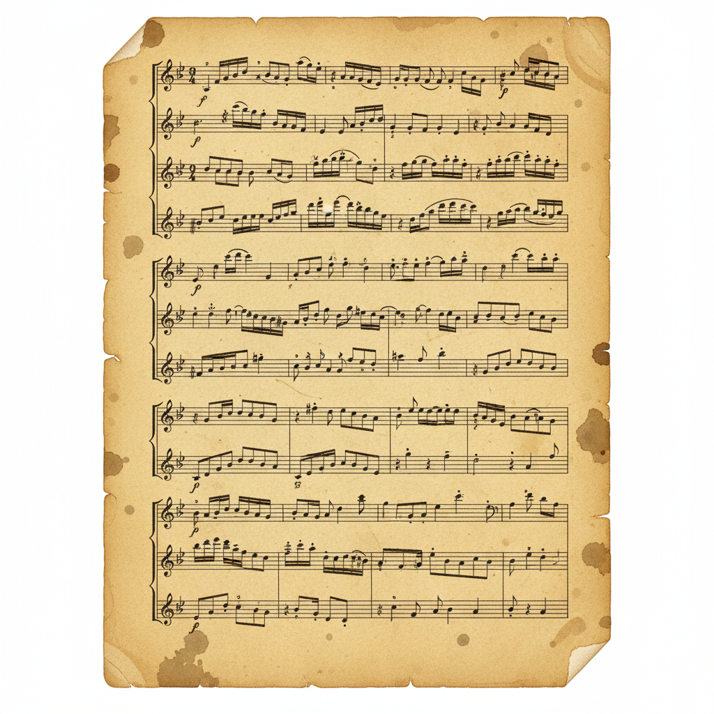 Notaların birleşerek bir beste oluşturduğu nota kağıdı (Görsel yapay zekâ ile oluşturulmuştur).