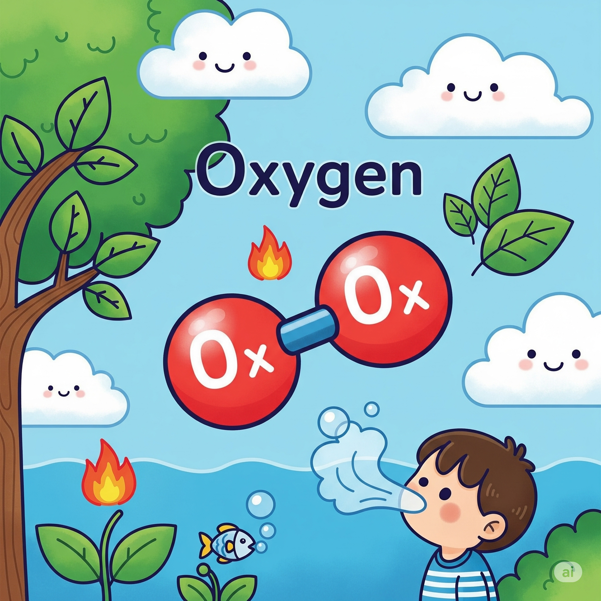 Oksijen, havada bulunan ve yaşamın sürmesi için gerekli olan bir gazdır. Renksiz, kokusuz ve tatsızdır. Kimyada "O" harfiyle gösterilir ve atom numarası 8’dir. Doğada genellikle O₂ (iki atomlu) olarak bulunur.