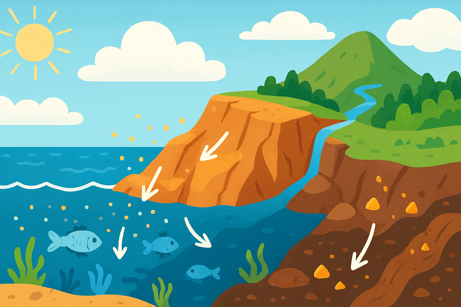 Nehirler, çevresindeki toprak ve kayalardan aldıkları mineralleri taşır. Bu mineraller suyun içinde çözünmüş halde yolculuk eder ve sonunda denizlere ulaşır. Yüzlerce, hatta binlerce kilometre süren bu yolculuk sonunda, denizler minerallerle beslenir. Bu durum, denizlerin tuzluluğunun en önemli sebeplerinden biridir.
