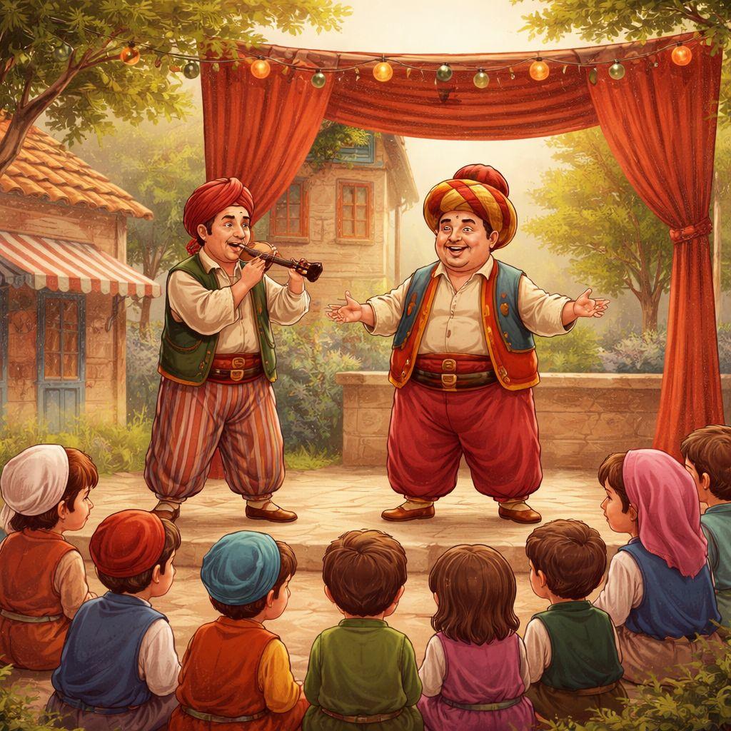 Bu oyunda oyuncular seyirciyle konuşur, onları güldürür ve şaşırtır. İzleyen çocuklar, farklı insan tiplerini ve eski zamanların yaşamını tanır. Orta oyunu, eğlendirirken kültürü öğretmesiyle önemlidir.