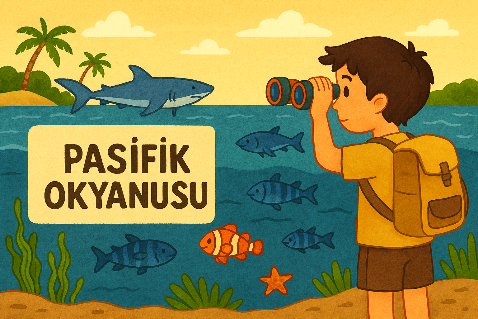 Pasifik Okyanusu, Dünya üzerindeki en büyük ve en derin okyanustur. Dünyanın üçte birinden fazlasını kaplar! Çok geniş olduğu için üzerinde binlerce ada bulunur. Pasifik, gezegenimizdeki havayı, iklimi ve canlı yaşamını şekillendiren en önemli su alanlarından biridir.