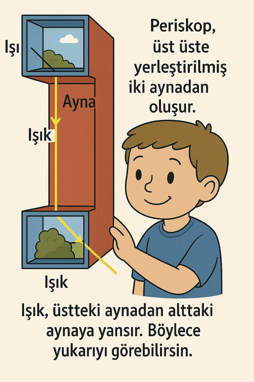 TÜBİTAK Bilim Genç. “Periskopta Yansıyan Işınları Gözlemleyelim.” Erişim: 10 Mayıs 2025. https://bilimgenc.tubitak.gov.tr/makale/periskopta-yansiyan-isinlari-gozlemleyelim.