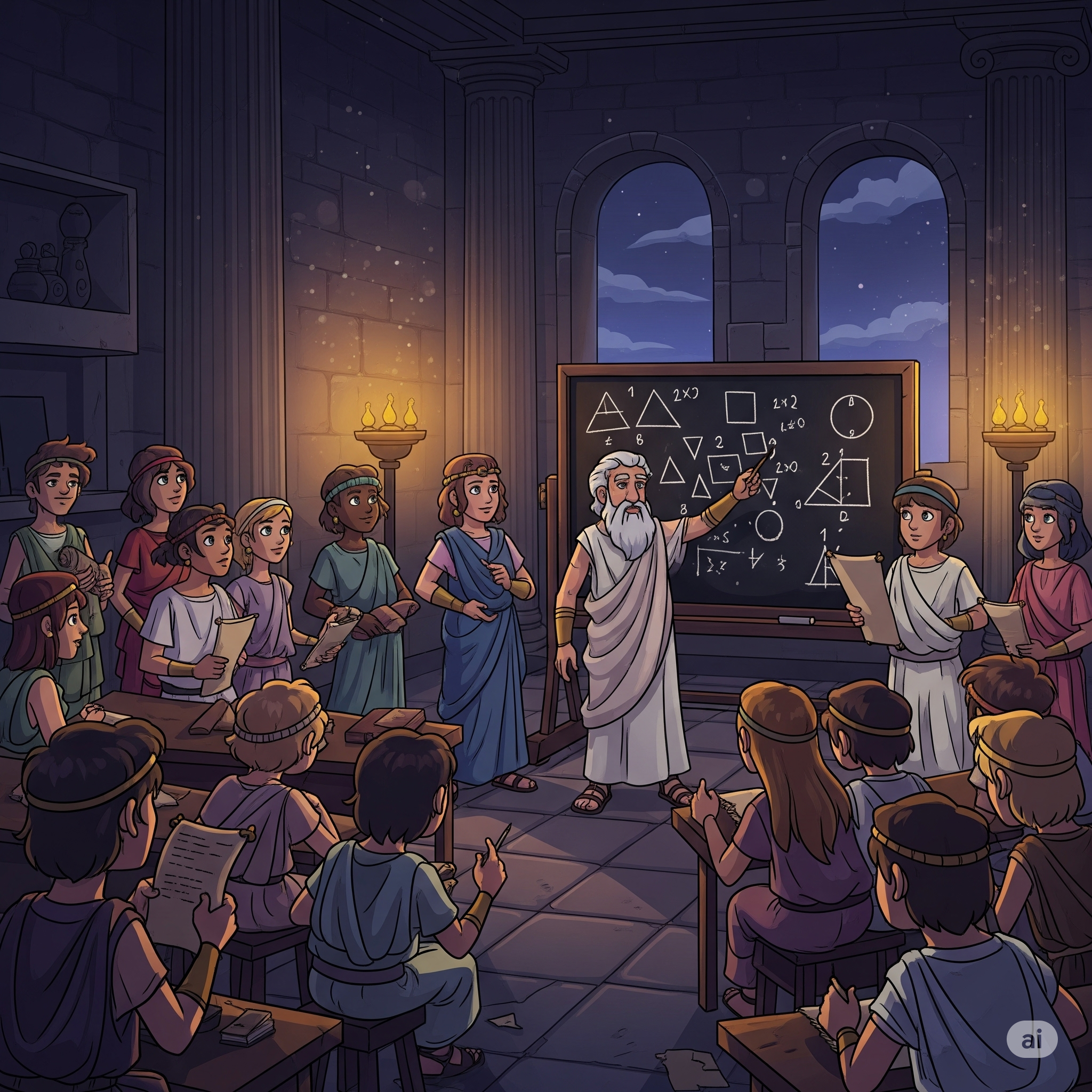 Pisagor’un okulunda hem kızlar hem erkekler vardı. Bu o dönem için çok sıra dışıydı. Okulda öğrenciler ikiye ayrılıyordu: