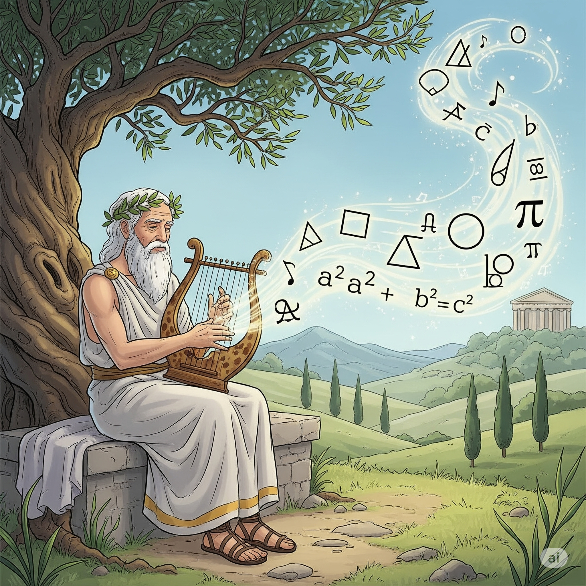 Pisagor, müzikle de ilgilenmişti. Tellerle yaptığı deneylerde seslerin uzunluk ve kısalıkla değiştiğini fark etti.