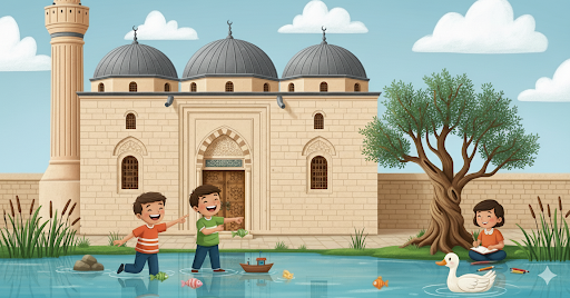 Merhaba! Bugün seni Şanlıurfa'ya, Balıklıgöl'ün hemen kenarındaki çok özel bir yere götürüyoruz: Rizvaniye Camii ve Medresesi. Bu yapı, hem bir cami hem de eskiden öğrencilerin ders gördüğü bir okuldu. Gelin, bu tarihi binanın hikayesini keşfedelim.