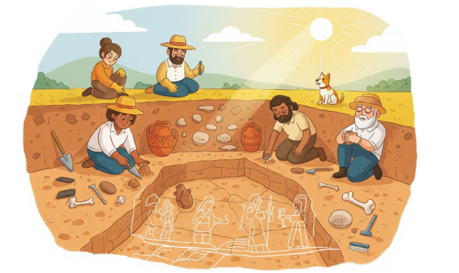 Hiç toprağın altına saklanmış eski bir hikâye duydun mu? Binlerce yıl önce insanlar nasıl yaşardı, neler yapardı merak ediyor musun? Arkeologlar, yani toprağın altındaki eski eşyaları ve evleri ortaya çıkaran bilim insanları, kazılar yaparak işte bu eski hikâyeleri gün yüzüne çıkarır.