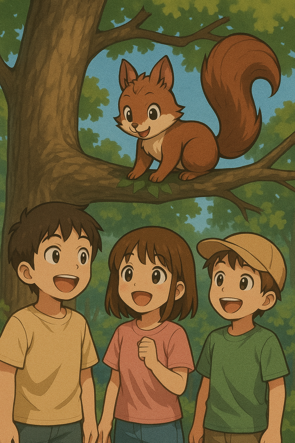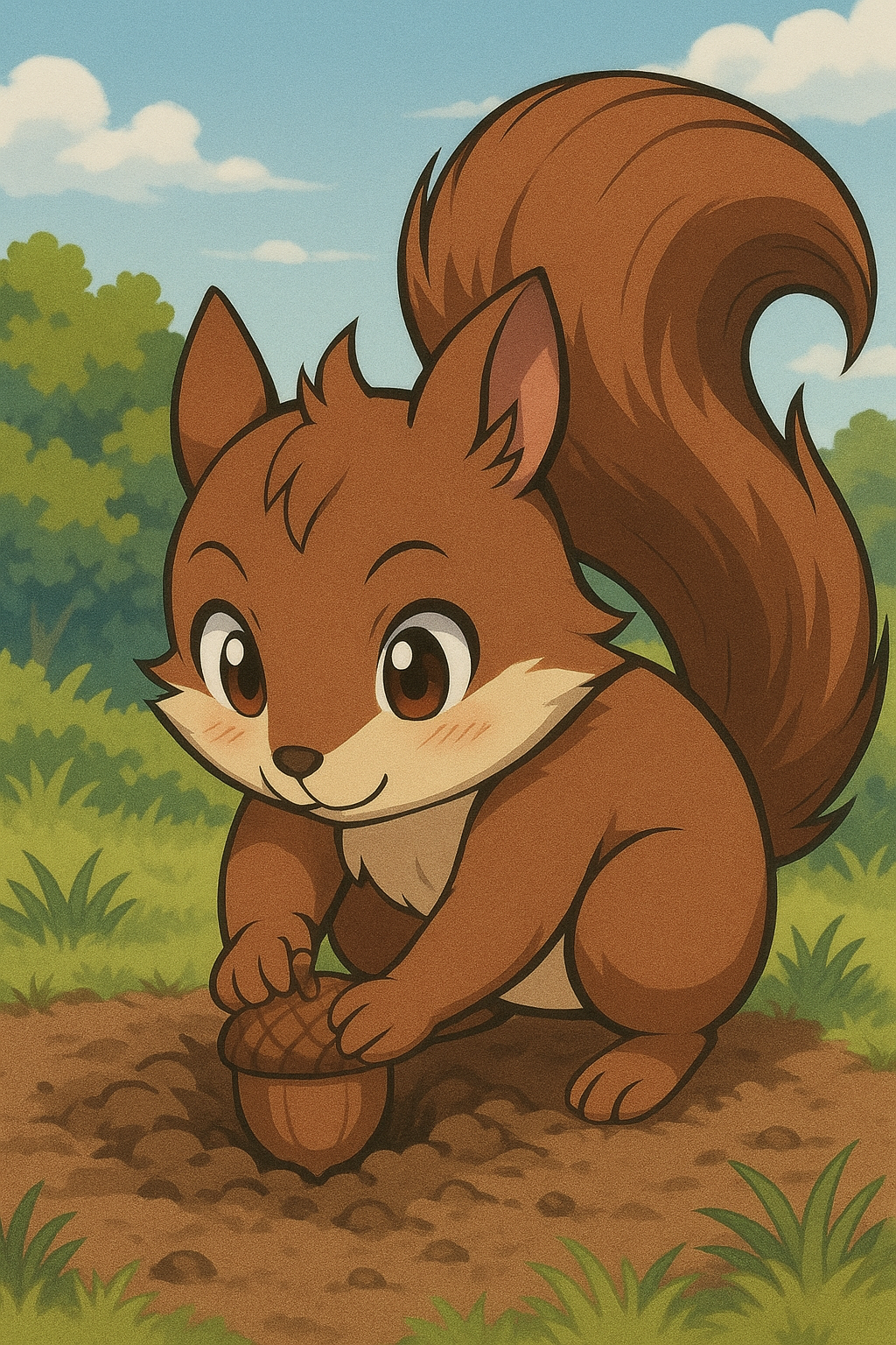 Meşe palamudunu toprağa saklayan sincap (Yapay zeka ile oluşturulmuştur)
