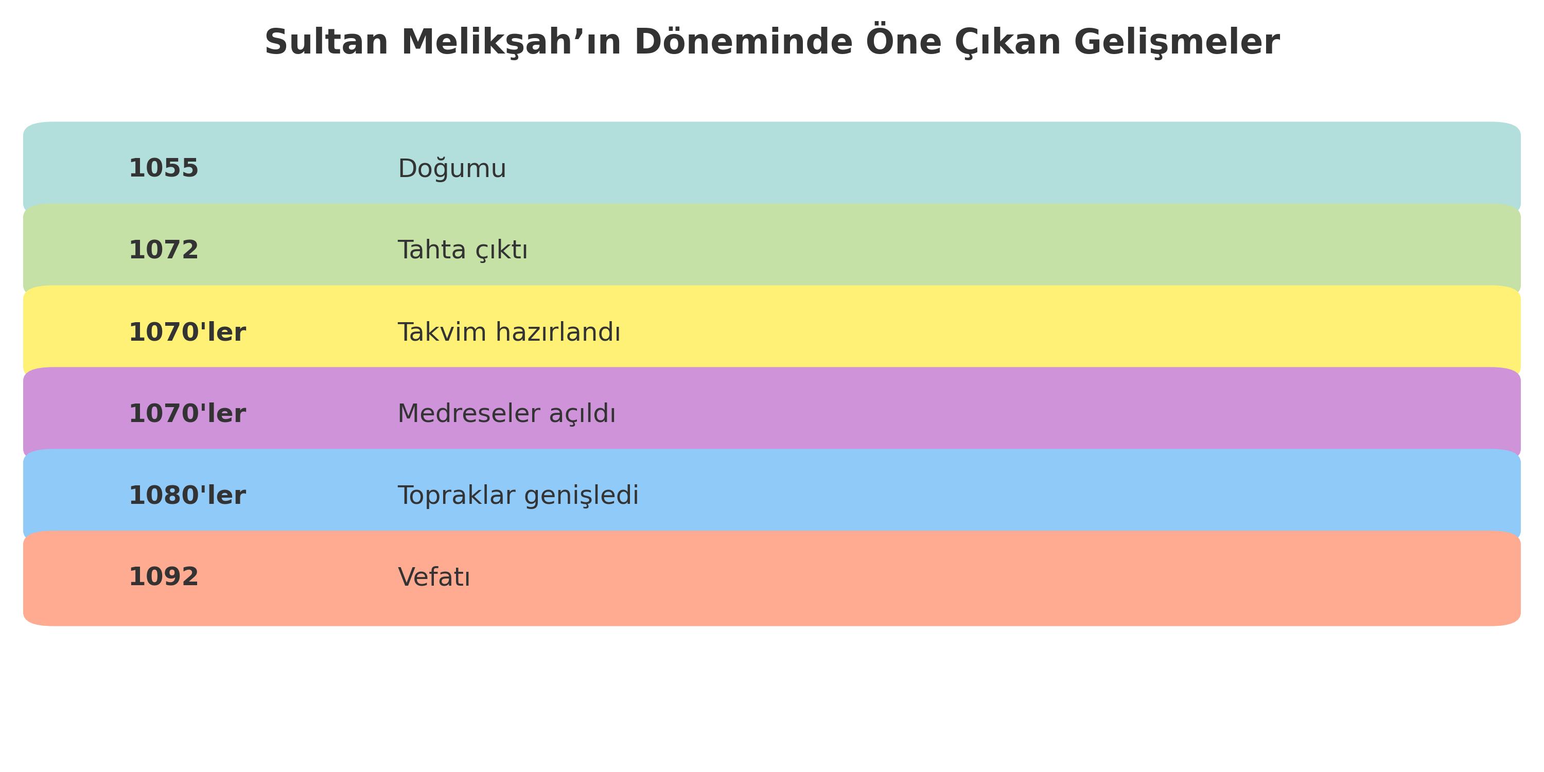 Sultan Melikşah, 1055 yılında doğdu ve 1072 yılında Selçuklu tahtına çıktı. Yaklaşık 20 yıl boyunca hüküm sürdü. Başkent İsfahan şehriydi. İran, Irak, Suriye, Orta Asya ve Anadolu’nun bazı bölgeleri onun döneminde Selçuklu topraklarına katıldı. 1092 yılında vefat ettiğinde, Selçuklu Devleti dünyanın en büyük devletlerinden biri hâline gelmişti.
