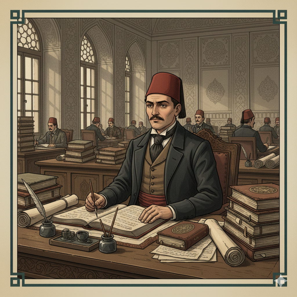 Devlet dairesinde çalışan Cemil Bey temsili (Görsel yapay zekâ ile oluşturulmuştur).