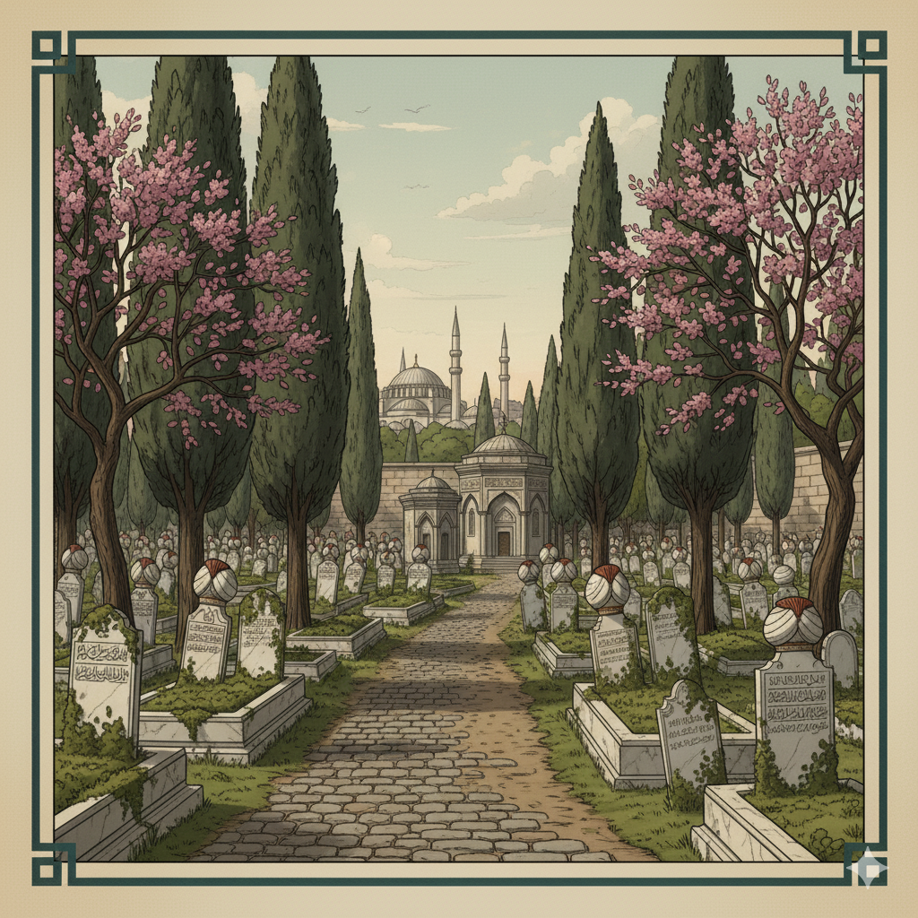 İstanbul'da Merkezefendi Mezarlığı temsili (Görsel yapay zekâ ile oluşturulmuştur).
