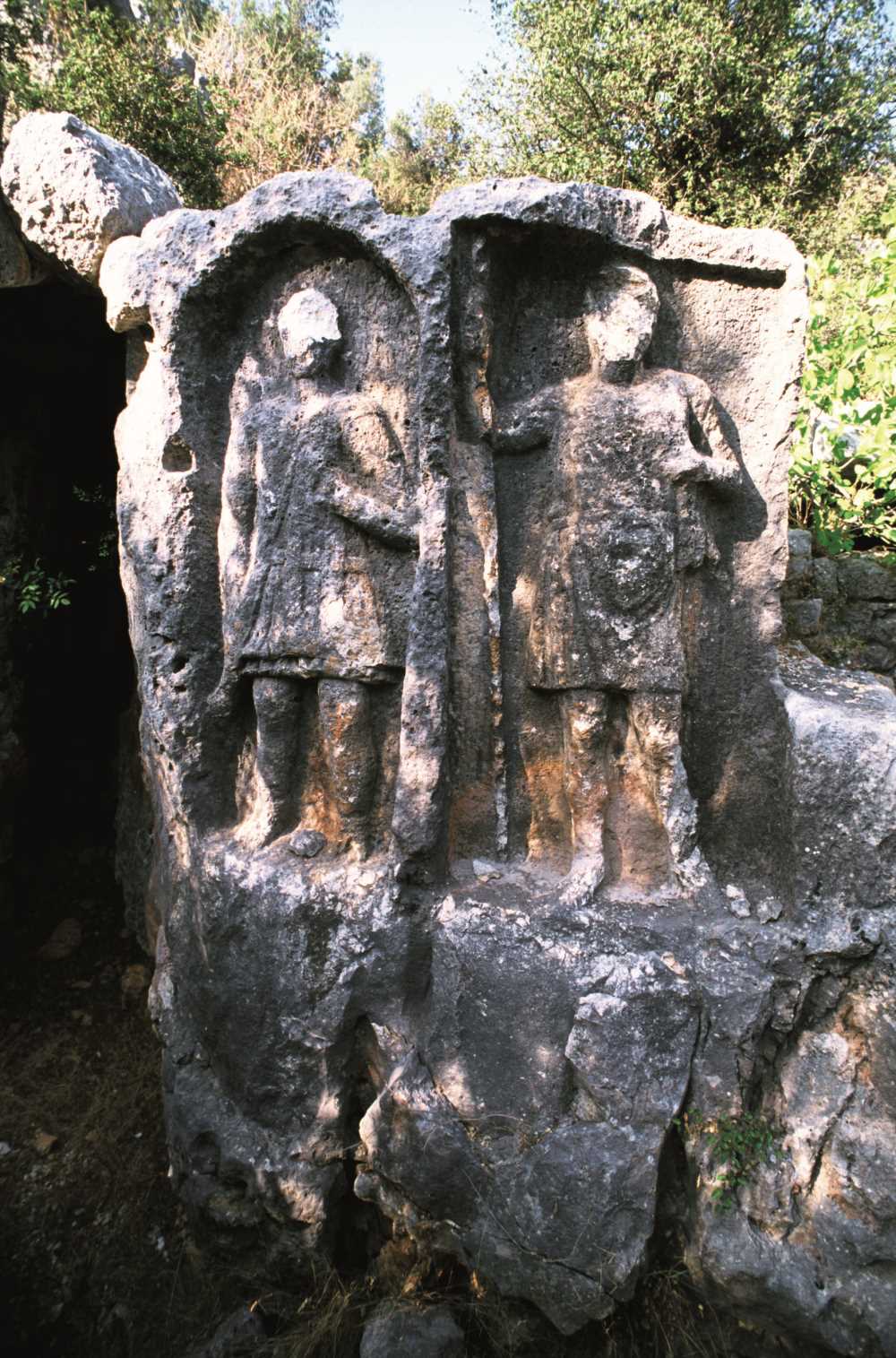 Kabartmalar: Ören yerinde, taşa oyulmuş heykeller olan kabartmalar da bulunmuştur. Bunların arasında iki asker, oturan bir kadın ve bir erkek (rahip ve rahibe) tasvirleri vardır. Bu kabartmalardan biri olan Oturan Filozof kabartmasışu anda Mersin Arkeoloji Müzesi'nde sergilenmektedir. Filozof, bilgeliği ve düşünmeyi temsil eden kişidir.