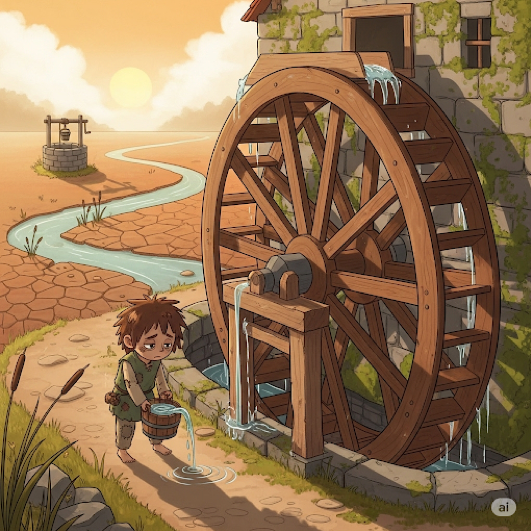 Deyimin kökeni, gerçek bir fiziksel olaya dayanır. Bir su değirmenini çalıştırmak için gereken güç, kovalarla taşınan sudan çok daha fazladır. Bu yüzden, deyim, büyük ve önemli bir işin küçük ve yetersiz çabalarla yapılamayacağını ifade eder. Kalıcı bir başarı için, kalıcı ve sağlam bir temel gerekir.