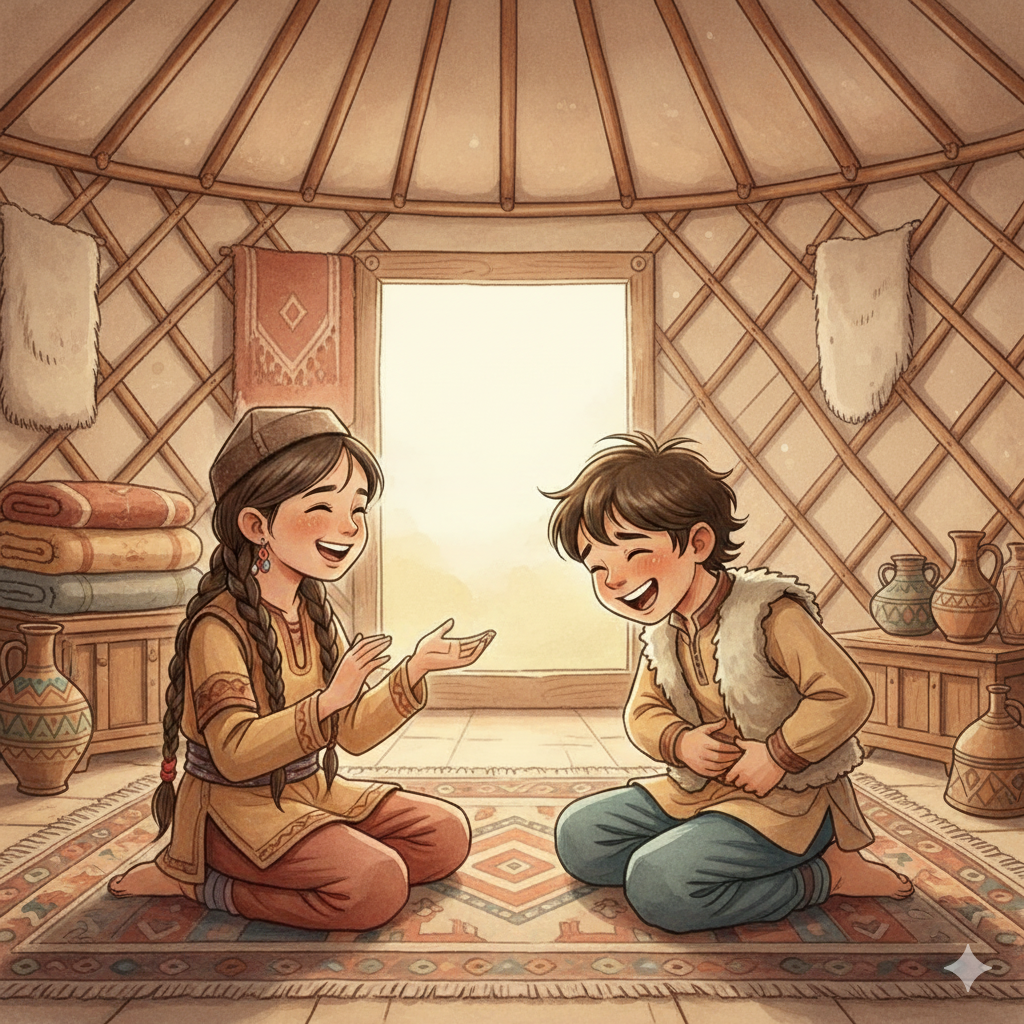 Sözlü kültürün hakim olduğu dönemlerde tekerleme kullanarak konuşan çocuklar (Görsel yapay zekâ ile oluşturulmuştur).