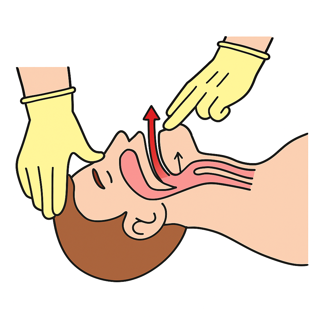 Baş geri - çene yukarı pozisyonu (Yapay zekâ ile oluşturulmuştur).