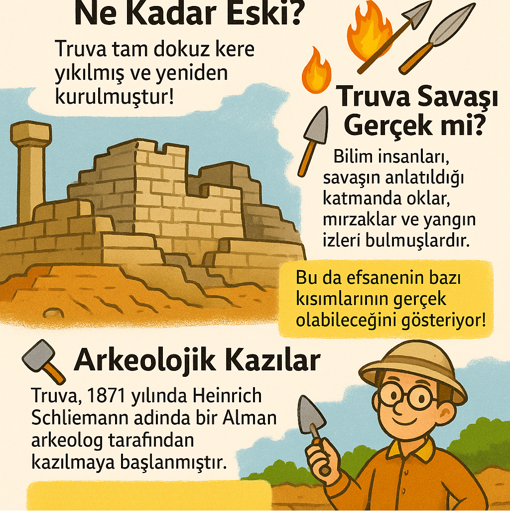 - Truva, 1871 yılında Heinrich Schliemann adında bir Alman arkeolog tarafından kazılmaya başlanmıştır.