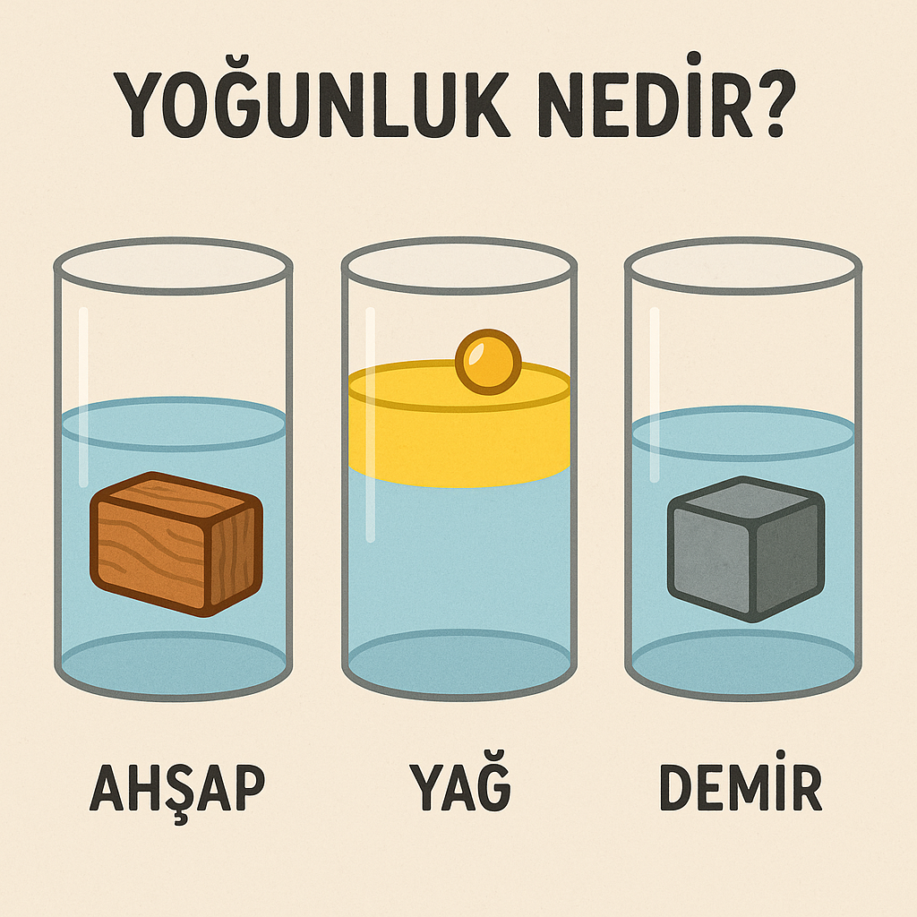 Yoğunluk, bir maddenin ne kadar "sıkı" olduğunu gösterir. Yani, bir maddenin belirli bir hacminde ne kadar madde bulunduğunu anlatır. Kısaca; yoğunluk = kütle ÷ hacim formülüyle hesaplanır.