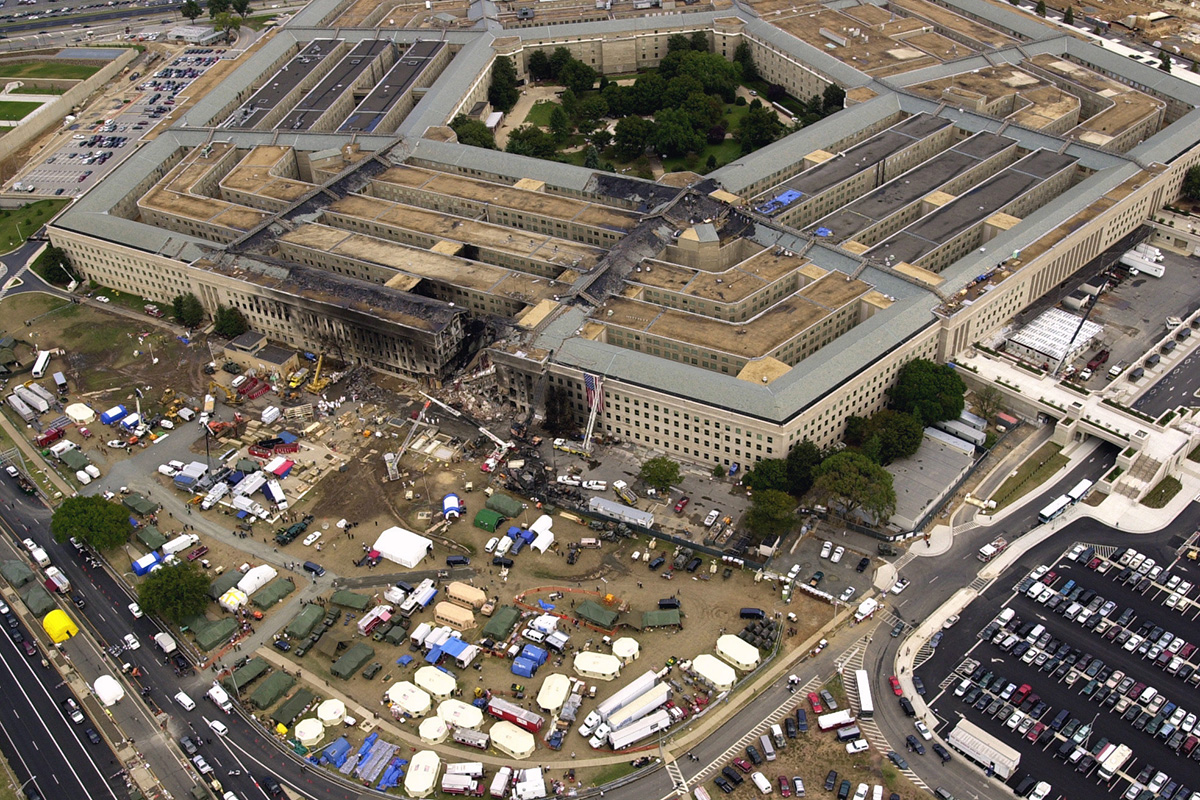 Çarpışma, beşgen planlı yapının dış halkasında kısmi çökme ve geniş çaplı hasar yaratmıştır. Olay yeri, New York’a kıyasla daha az sayıda kamera kaydıyla belgelenmiş olsa da fiziksel tahribat ve enkaz dağılımı uçağın doğrudan çarpışını açık biçimde ortaya koymuştur. Çarpışmanın gerçekleştiği kanatta görev yapan personel arasında can kayıpları yaşanmış, binanın diğer bölümlerinde tahliye ve yangınla mücadele eşzamanlı yürütülmüştür.