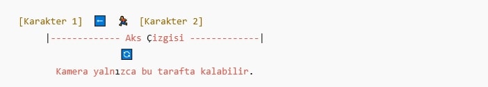 - 180 Derecelik Açının Korunması: Kamera bu aks çizgisinin bir tarafında kalmalıdır. Kameranın aksı aşması, karakterlerin yönlerinin değişmiş gibi algılanmasına neden olur.