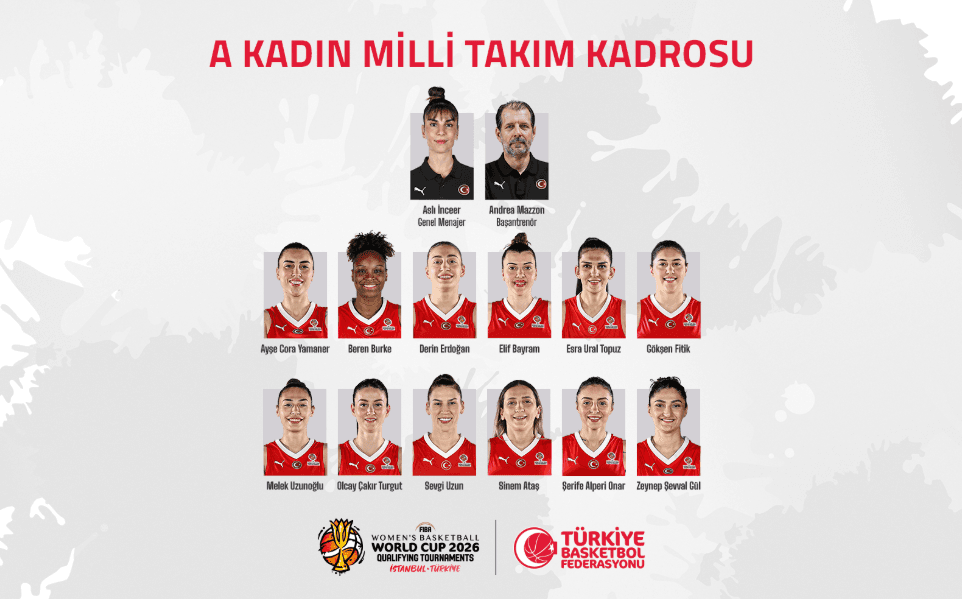 Milli takımın başantrenörlük görevini İtalyan çalıştırıcı Andrea Mazzon üstlenmektedir. Türkiye Basketbol Federasyonu (TBF) tarafından açıklanan kafilede; takım kaptanı Olcay Çakır Turgut, Alperi Onar, Sevgi Uzun, Sinem Ataş, Derin Erdoğan, Ayşe Cora Yamaner, Elif Bayram, Zeynep Şevval Gül, Melek Uzunoğlu, Esra Ural Topuz ve devşirme statüsündeki Kennedy (Beren) Burke yer almaktadır. Başantrenör Mazzon, kadroya dahil edilen on iki oyuncunun bireysel üstünlüklerinden ziyade takımın benimsediği oyun tarzına uygunlukları temel alınarak seçildiklerini ifade etmiştir.