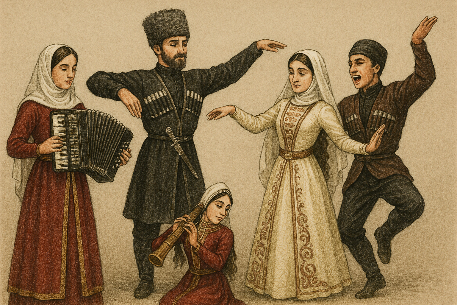 - Ritsa: Abhazya’nın doğal güzelliklerini yansıtan, ağır ve ritmik figürlerden oluşan bir danstır.